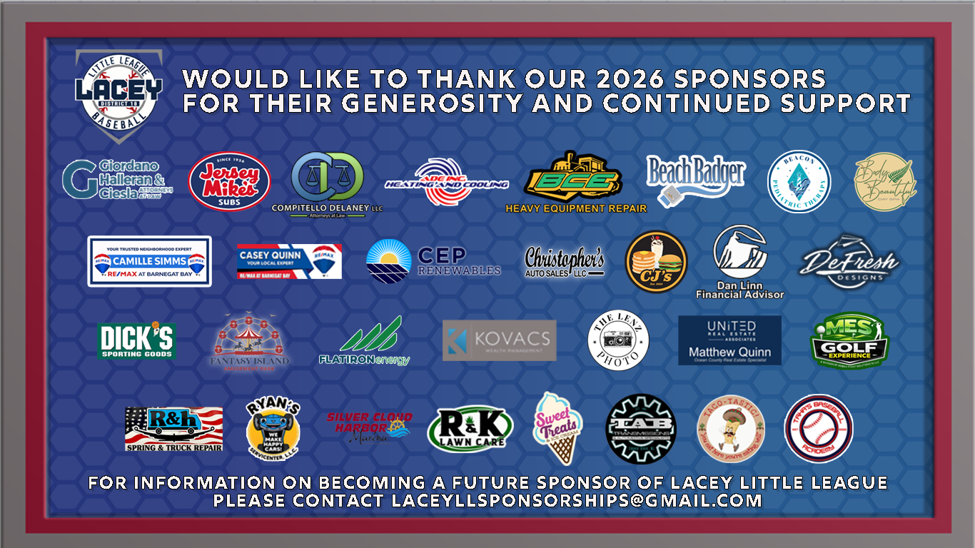 On behalf of our players, coaches, volunteers and families, the Lacey Little League Board of Directors would like to extend our sincere thank you for your support. Please see the attached sponsorship form which outlines the various tiers available.